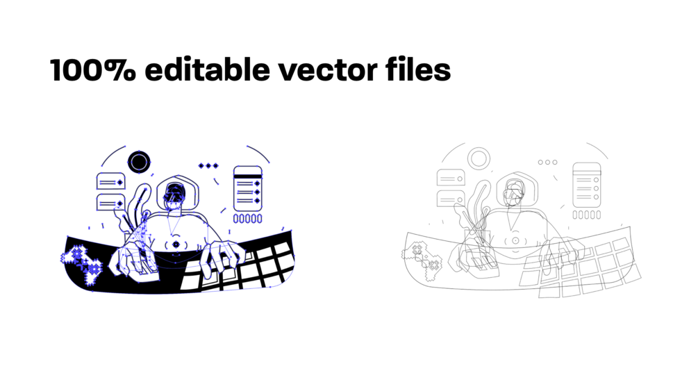 After downloading it you will get 100% editable vector files, so you can edit them freely, as well as raster formats, and a file for Figma and Sketch users.