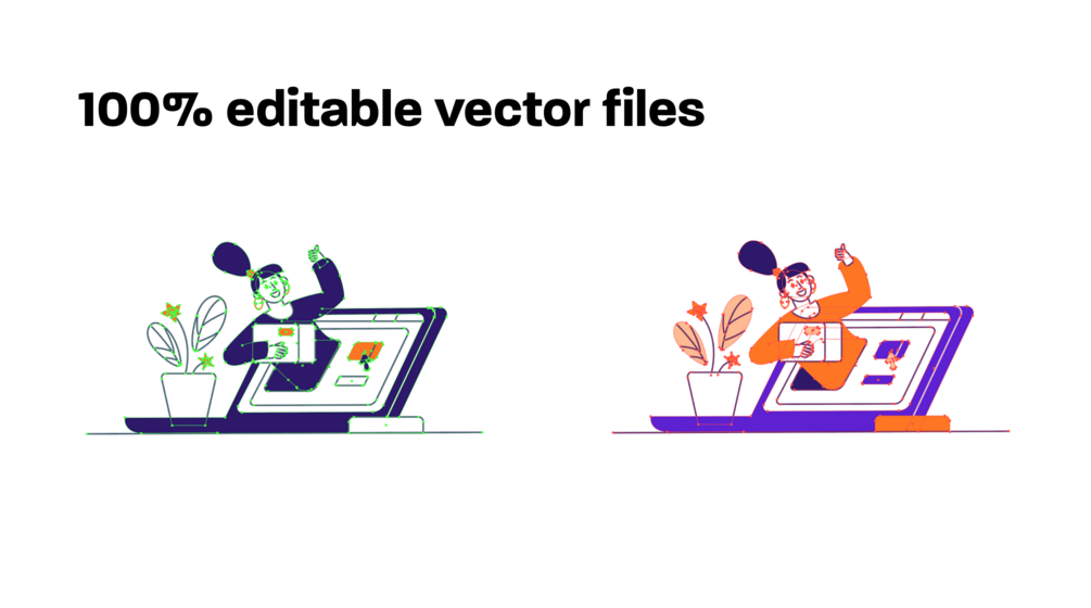 After purchasing it you will get 100% editable vector files, so you can edit them freely, as well as raster formats, and a file for Figma and Sketch users.