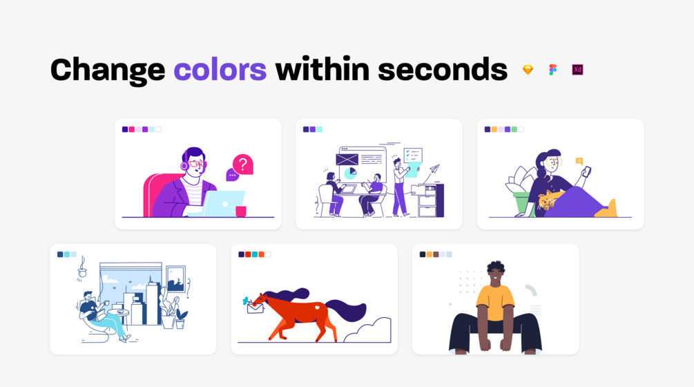 - A template for Sketch, Figma, Adobe XD for changing colors on static illustrations